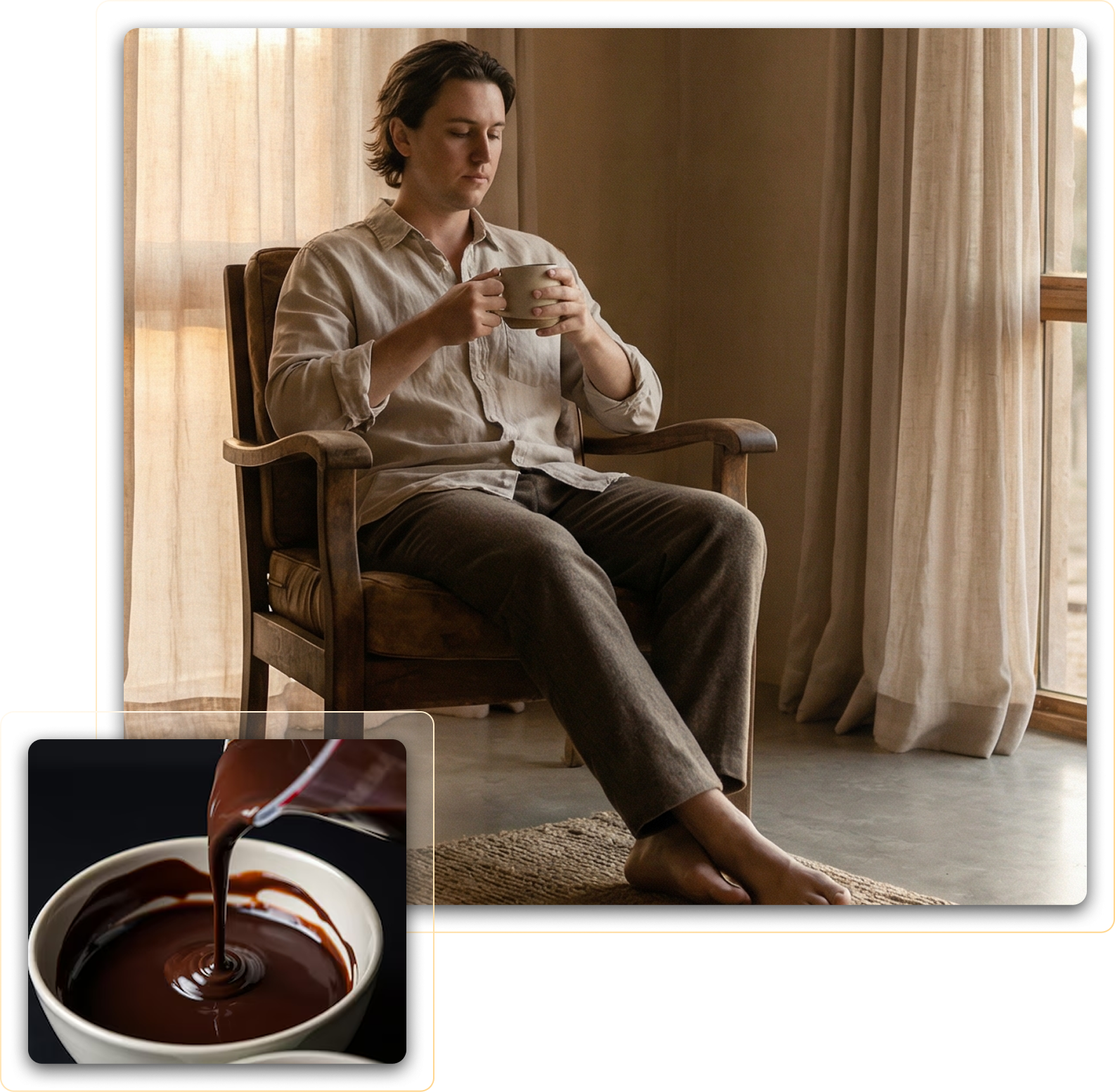 Yet beyond the measurable, there is the experience. Cacao has a unique ability to bring the body into a state of calm alertness, grounded, open, and present. It invites you inward.